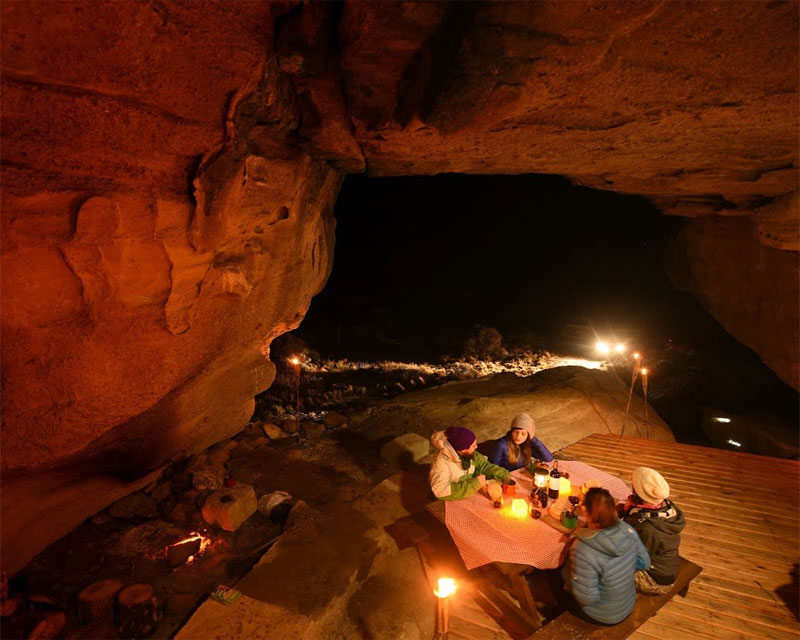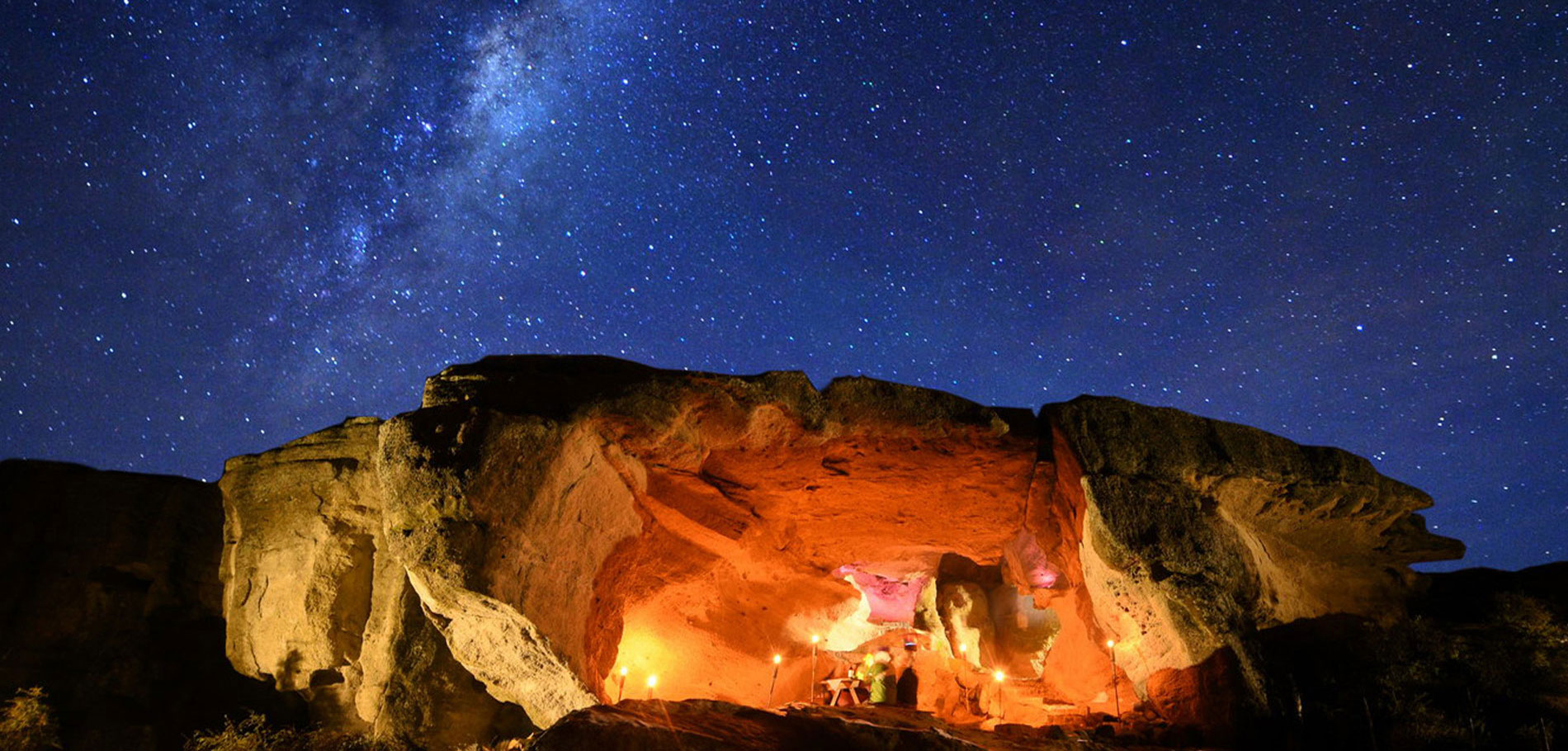 Por último, en la tercera parada, se visitará la zona arqueológica (Cuevas de Walichu). Aquí se podrá apreciar arte rupestre a través pinturas en las cuevas a orillas del lago, donde hace miles de años la cultura Tehuelche dejó sus marcas en la roca y que hoy podemos interpretar. Es allí, dentro una de las cuevas de la zona, donde se almorzará ó cenará disfrutando de una experiencia única en un ambiente totalmente natural que nos transportará a aquellos remotos años de los primeros exploradores. Finalizado el recorrido y la comida, se regresará a El Calafate.