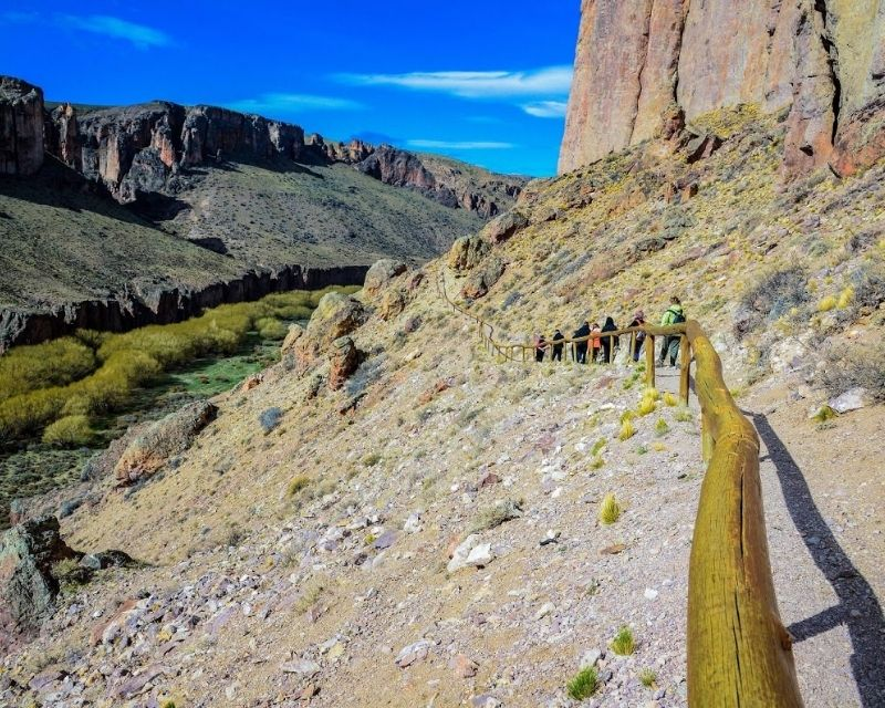 Opcional Trekker Plus: Para aquellos entusiastas del trekking consideramos la posibilidad de arribar al Centro de Visitantes realizando un trekking adicional de 5 km por el Cañadon del rio Pinturas (sujeto a condiciones operativas) para luego sumarse al sendero guiado con el resto del grupo.