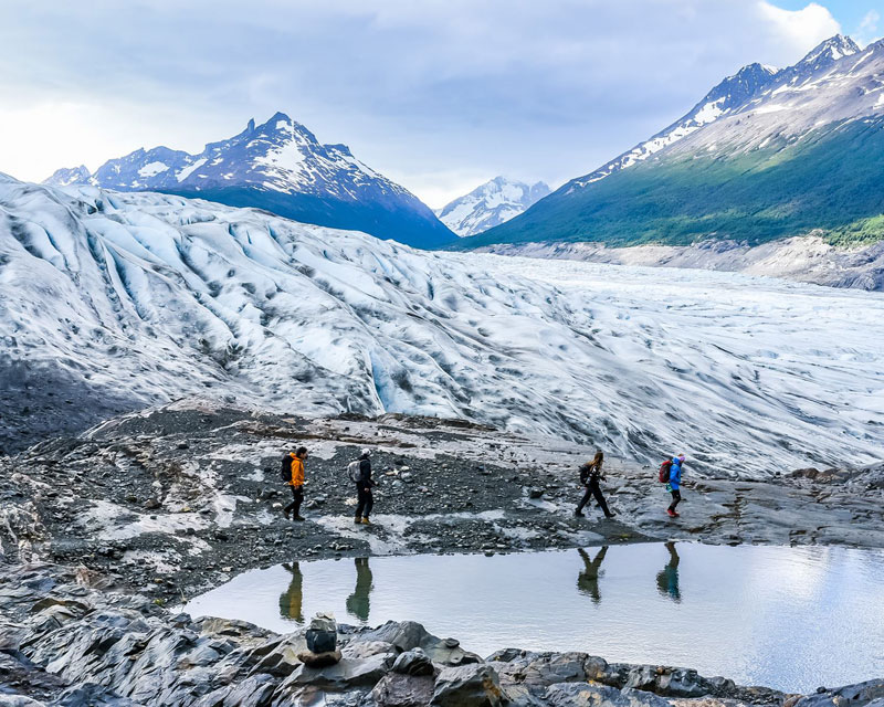 El Glaciar Grey es el de mayor magnitud de todos a los cuales existe un acceso programado en forma regular. En la actualidad esta maravilla natural de imponentes dimensiones y que constituye el extremo del Gran Campo de Hielo Sur del continente, puede ser visitado y admirado en toda su magnitud. En el sector de refugio Grey los guías realizarán una charla de introducción, en la que explicarán el recorrido, los tiempos que tomará la excursión y además harán la prueba y ajustes de equipamiento para cada pasajero. Luego, navegaremos en un bote zodiac por 15 minutos hasta el brazo oeste del glaciar grey. Al llegar, desembarcamos en la isla del glaciar (nunatak) y comenzamos a caminar sobre esta por una hora aproximadamente hasta llegar al hielo. Antes de ingresar al glaciar, el guía realizará la charla de seguridad, en la que explicarán las técnicas de desplazamiento en el hielo y el uso correcto del equipo. Una vez terminada la charla, comenzará nuestra exploración sobre el glaciar grey por 3 horas, tiempo durante el cual podremos observar grietas, ríos, lagunas y túneles con sus diferentes tonalidades de color celeste. Después de 3 horas sobre el glaciar, emprendemos el retorno.