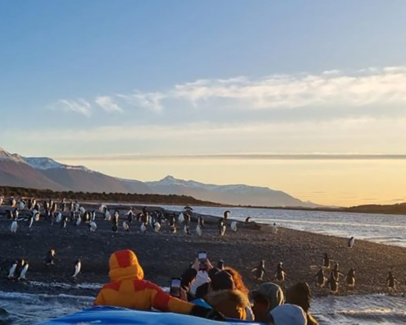 En Puerto Almanza, abordaremos una embarcación pequeña para navegar por el canal Beagle, permitiéndonos acercarnos a las islas y disfrutar de una experiencia respetuosa con la naturaleza, sin interferir en el hábitat de los pingüinos. Durante el recorrido hacia Isla Martillo, contemplaremos paisajes espectaculares y distintas especies de aves marinas. Al llegar a la isla, nos aproximaremos para observar de cerca a los pingüinos de Magallanes y Papúa.