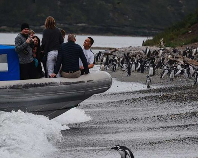 Finalmente llegaremos a Isla Martillo, hogar natural de los simpáticos pingüinos. Allí podremos aproximarnos con el semirrígido para apreciar las dos especies que nidifican en la isla: los pingüinos de Magallanes y Papúa.