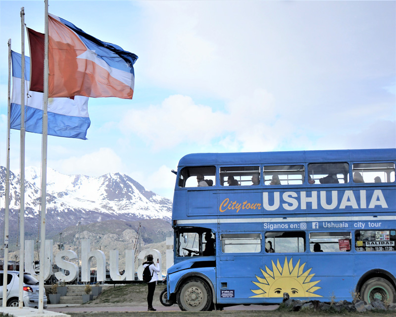 Salida desde Maipú 480, esquina Hotel Albatros. Recorrido costero de ambas bahías, de la bahía de Ushuaia, donde entre otros hitos, pasamos frente a la Casa Beban, y de la Bahía Golondrina, hasta llegar a los nuevos barrios y cruzar el Río Pipo. Se continúa subiendo hasta la intersección con la Ruta Nacional Nro. 3 que va al Parque Nacional tomando luego la Avenida Alem en la parte alta de la ciudad. Esto nos permitirá tener vistas de la ciudad desde arriba. Rodearemos luego la Laguna del Diablo y el Arroyo Buena Esperanza. Atravesaremos luego el Barrio de los Italianos hasta el puesto de Vialidad Nacional y el Hospital. Seguimos bordeando el Cementerio para cruzar por la pasarela al otro lado de la Bahía, donde tenemos la parada fotográfica y a toda la ciudad de Frente desde el viejo Aeropuerto. Retomamos la Avenida Maipú hacia el Museo Marítimo (Ex Presidio), los pasajeros que deseen visitar la Cárcel pueden descender en este punto. Nosotros continuaremos hasta el punto de inicio para así finalizar el City tour.
