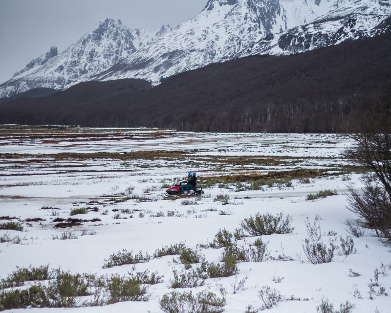 Partida desde el hotel 8:30 hs rumbo al valle Tierra Mayor, donde comienza la aventura! Previa instrucción de nuestro guía, nos calzamos las raquetas de nieve e iniciamos una caminata por los alrededores. Visitamos puntos panorámicos y contemplamos la majestuosidad del paisaje. Al culminar la caminata, nos subimos al vehículo especialmente equipado con orugas y comenzamos el cruce de la gran planicie nevada, donde tendremos tiempo de tomar fotografías en un paisaje de ensueño.