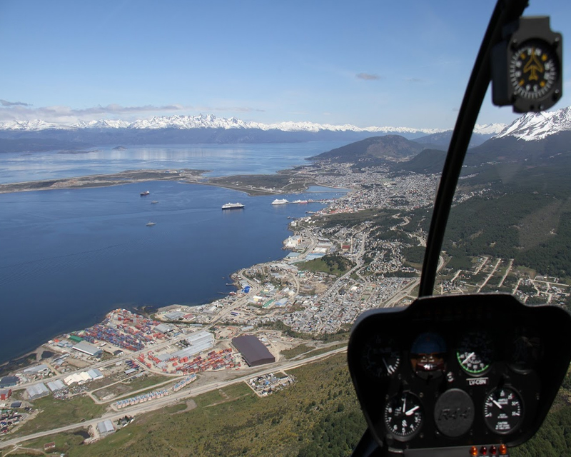 Nos reuniremos en el helipuerto de Luis Pedro Fique 117 a la hora que elijan. Tras la charla de seguridad, subiremos al helicóptero para sobrevolar durante 7 minutos la ciudad de Ushuaia. Pasaremos por lugares tan emblemáticos como bahía Golondrina, el monte Susana, el Glaciar Martial y el Presidio.