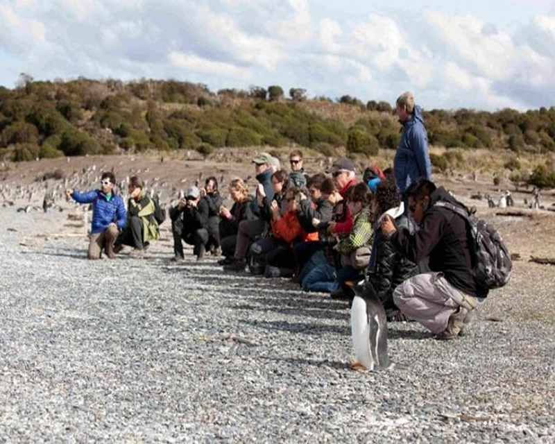 Zarpamos del muelle turístico local recorriendo la amplia Bahía de Ushuaia hasta alcanzar el Canal Beagle a través del Paso Chico. Allí navegamos alrededor de la Isla de los Pájaros donde apreciaremos la avifauna fueguina observando Skuas, Albatros de Ceja Negra, Patos Vapor, Cauquenes, Gaviotas Cocineras y Gaviotas Grises; y de la Isla de los Lobos donde podremos observar lobos marinos de uno y dos pelos. Ambas islas pertenecen al archipiélago Bridges. Al llegar al Faro Les Eclaireurs (Los Iluminadores), podremos apreciar las colonias de Cormoranes Imperiales y Cormoranes Roqueros; y también escuchar la historia del hundimiento del SS Monte Cervantes que protagonizó en 1930. Continuando, navegaremos hacia el Este disfrutando de los maravillosos paisajes del canal y las montañas que lo rodean, allí divisaremos sobre la costa Argentina Puerto Almanza y sobre la costa Chilena la Base Naval Puerto Williams, y luego bordearemos la Isla Matillo que visitaremos mas tarde para realizar un descenso y caminar entre los pingüinos. Al arribar a la Estancia Harberton desembarcaremos para dividir al grupo, algunos irán a conocer el Museo y las instalaciones de la Estancia, mientras que otros accederemos a un Zodiac. Con el navegaremos hasta las playas de la Isla Martillo para así descender y realizar una caminata entre las pingüineras. Observaremos Pingüinos Magallánicos y Papuas. Retornamos navegando a la Estancia para que el grupo que visito el Museo realice la navegación y visita a la Isla Martillo, nosotros entonces realizaremos la visita al Museo y las instalaciones de la Estancia. Mas tarde, luego de reunirnos todos nuevamente, emprenderemos regreso a Ushuaia en un vehículo terrestre que nos dejará donde partimos por la mañana, en el muelle turístico.