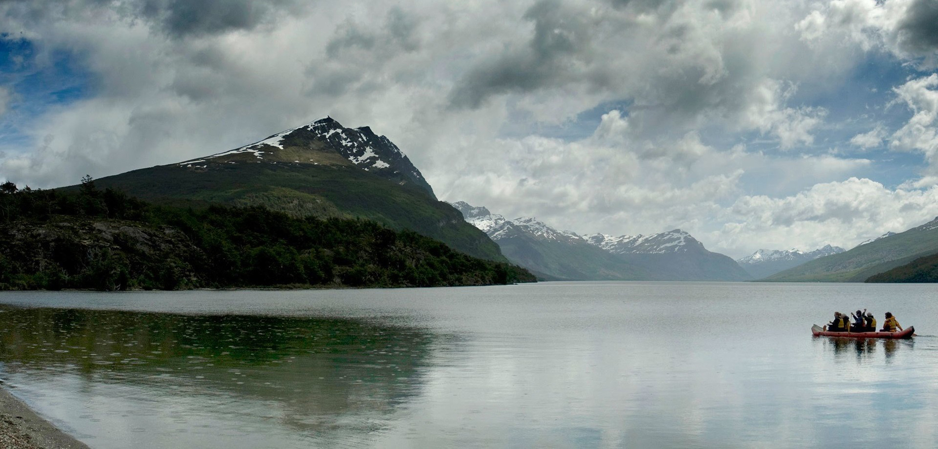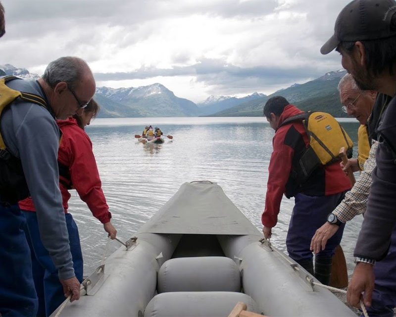 Cerca del Lago Acigami (ex Lago Roca) almorzaremos en nuestras cómodas carpas estructurales a reparo del clima. Luego de un pequeño descanso, y equipados con botas de goma, cubre pantalones y salvavidas, iremos remando desde el Lago Acigami a bordo de canoas inflables (tipo duckie), muy seguras y estables- siguiendo el lento transcurrir de los ríos Lapataia y Ovando. Nuestra travesía comienza en agua dulce hasta llegar al mar, en Bahía Lapataia. Durante aproximadamente una hora, veremos la flora y fauna de lugares inaccesibles, acercándonos al punto de vista que gozaron los Yámana hace ya varios siglos atrás.